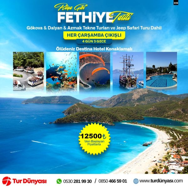 Rüya Gibi Fethiye Ölüdeniz Gökova Turu 3 Gece Konaklamalı (Ağustos)